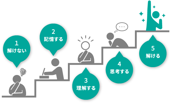 そして、問題を解くために必要になる知識の「記憶・理解・思考」を自由自在に活用することができれば、難度の高い問題でも解けるようになっていくことができます。